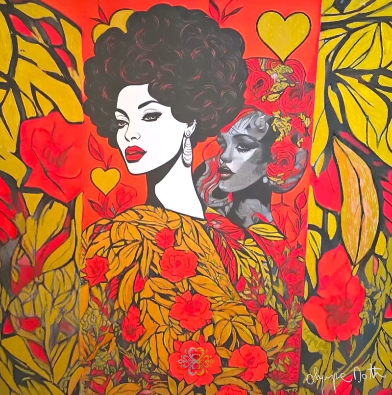 L’opera “The cat” di Ks Olimpia è una vibrante esplosione di energia neo-espressionista. Attraverso l’uso audace della acrylic paint, l’artista trasforma il volto di un gatto in un’icona pop monumentale, caratterizzata da un ipnotico contrasto tra l’occhio azzurro e quello rosso. Ks Olimpia scardina la realtà con pennellate istintive e segni grafici marcati, accostando blocchi di colore saturo, gialli, blu e arancioni, che emanano una forza vitale travolgente. La stella bianca centrale e i tratti quasi tribali elevano il soggetto a una dimensione mitica. È un’opera carismatica che cattura lo sguardo, celebrando la gioia cromatica.