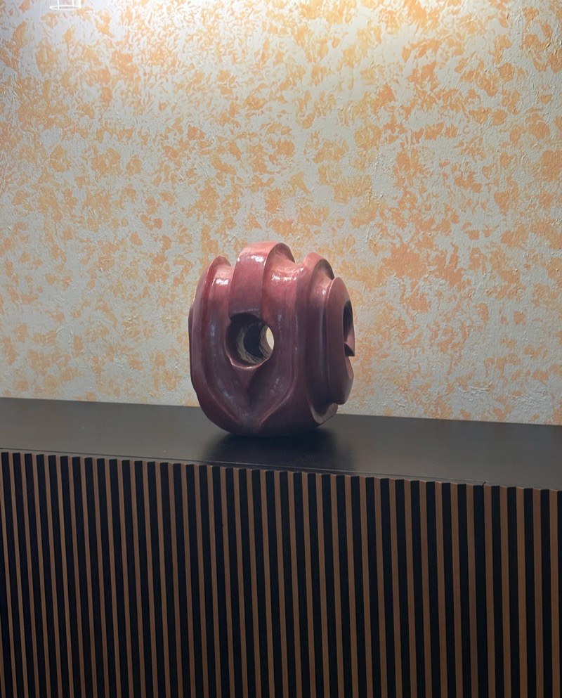 Una forma compatta e concentrata occupa lo spazio con una presenza silenziosa ma determinata. Le cavità scavate nel cemento rompono la massa piena, introducendo un dialogo tra interno ed esterno, ordine e tensione. La superficie, levigata e poi verniciata, tradisce un lungo processo di controllo e disciplina, dove il gesto scultoreo doma un materiale grezzo e resistente. In “Non siamo figli del caos”, Gian Paolo Chiodi afferma una visione strutturata dell’esistenza: il cemento, simbolo di costruzione e stabilità, diventa metafora di una forma pensata, voluta, lontana dall’arbitrarietà. L’opera restituisce equilibrio e misura, opponendo alla casualità una volontà consapevole.