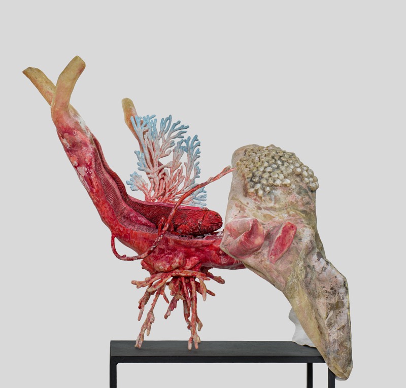 Un corpo in trasformazione, sospeso tra reperto e visione, domina lo spazio con forza perturbante. In “Ricerca di un nuovo spazio “Livorno 1888”, Franco Signorini concepisce la scultura come organismo in mutazione, dove tecnica mista e stampaggio generano superfici vibranti, dense di materia. Le cromie carnali si intrecciano a tonalità calcaree e marine, suggerendo un dialogo tra anatomia e paesaggio. La composizione, dinamica e asimmetrica, rompe l’equilibrio tradizionale e apre a una tensione espansiva. Il riferimento storico diventa così simbolico: non nostalgia, ma superamento. L’opera afferma una ricerca identitaria intensa, capace di coniugare memoria e sperimentazione plastica.
