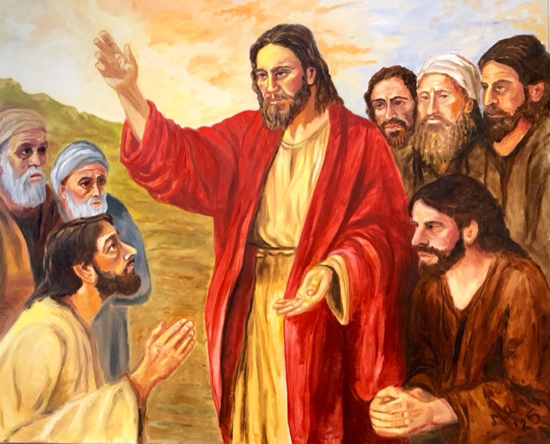 L’opera Senza Titolo di Nora Komoroczki, in arte Mano, si configura come una vibrante rievocazione d’ispirazione sacra, capace di coniugare tradizione iconografica e sensibilità contemporanea. La pennellata, ampia e materica, struttura una composizione corale dominata dalla figura centrale, il cui rosso intenso diviene fulcro visivo e simbolico di passione e redenzione. I volti, modellati con cura espressiva, restituiscono un’intensa partecipazione emotiva, sospesa tra fede e interrogazione. La luce calda, diffusa e avvolgente, sembra irradiarsi dalle figure stesse, trasfigurando la scena in una dimensione atemporale e profondamente spirituale.