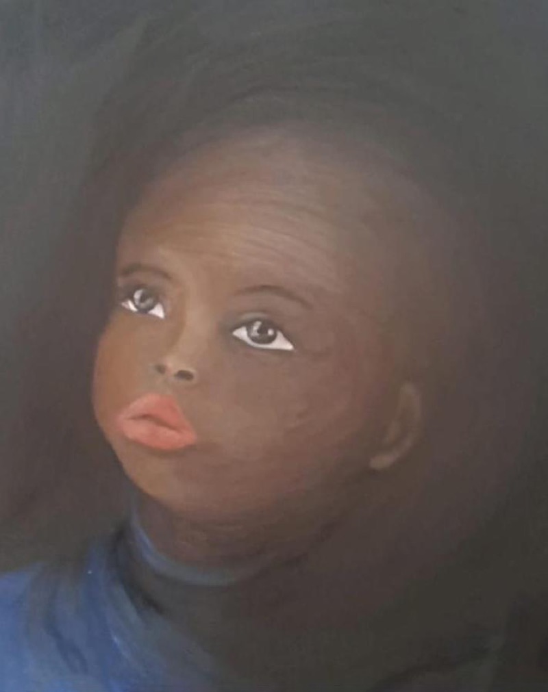 L’opera di Rosanna Ciminari si rivela come un’indagine emotiva di straordinaria forza introspettiva, dove la tecnica dell’olio su tela diventa lo strumento privilegiato per esplorare le profondità della condizione umana. Il dipinto è dominato da un volto che emerge con delicatezza quasi scultorea da uno sfondo d’ombra, catalizzando l’attenzione su un’espressione di vibrante attesa. Gli occhi rivolti verso l’alto diventano una luce che trascende l’estetica e si fa preghiera visiva. Ciminari fonde morbidezza e materia, creando un contrasto con il blu della veste e trasformando l’istante in un simbolo di resilienza e aspirazione verso l’infinito.