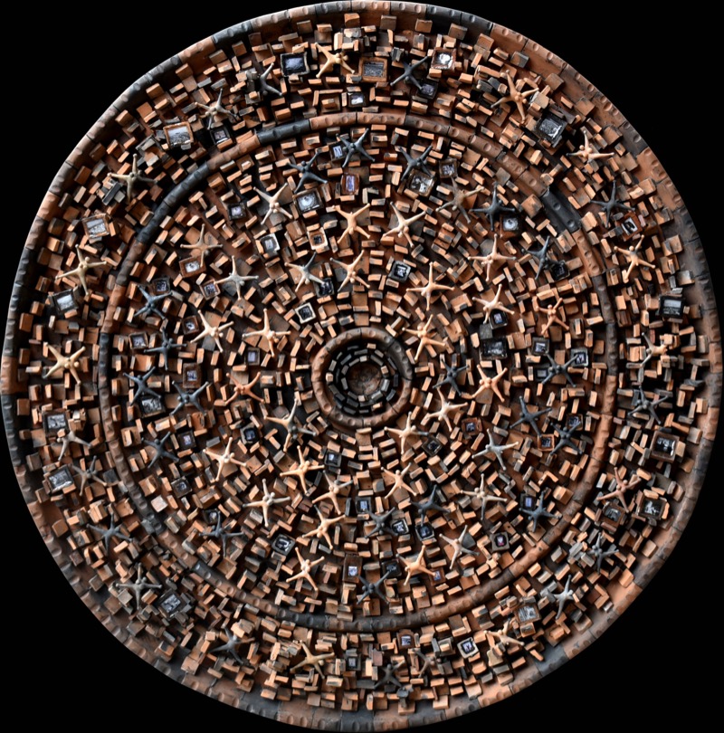 L’opera “Where to?” di Ivan Kanchev si presenta come un’ipnotica struttura circolare che sfida l’osservatore attraverso un complesso assemblaggio materico. L’autore fonde sapientemente argilla rossa, fuliggine, fotografia, resina e poliuretano, creando un microcosmo labirintico popolato da una moltitudine di piccole figure antropomorfe. Questi minuscoli esseri sembrano muoversi in un vortice centrifugo, evocando un senso di smarrimento collettivo e ricerca esistenziale. Attraverso il contrasto tra materiali arcaici e sintetici, Ivan Kanchev trasforma la scultura in una potente metafora dell’incertezza umana. In questo diagramma sociale stratificato, la domanda posta dal titolo risuona con forza, invitando a riflettere sul cammino verso una meta ancora ignota.